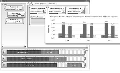 простою, час наладки на деталь, робота в реальному часі та ін. Загалом дана