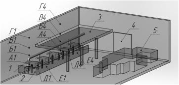 система вентиляции, 2 – ширмы, 3 – железобетонная плита, 4 – входные ворота, 5