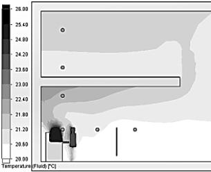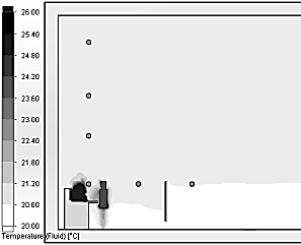 «вытяжка спереди» (черным выделены зоны, где температура выше 26 °С).