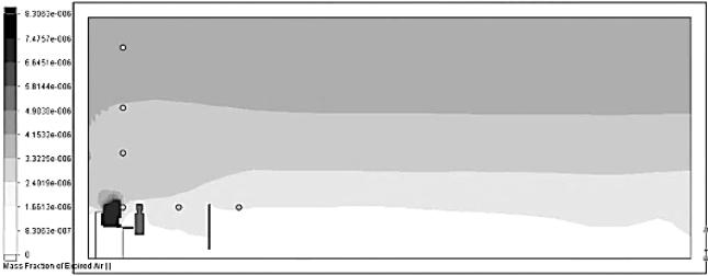 Рис. 4 – Вертикальный срез поля концентрации ТССА в рабочей