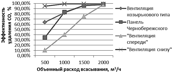 Рис. 6 – Эффективность удаления угарного газа местными