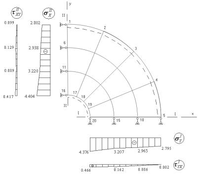 1) в полярной системе координат. Нагрузка – равномерно распределенная по