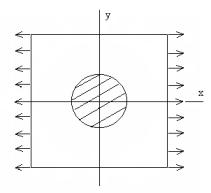 Начало системы координат x, y расположим в центре отверстия, а оси x и y направим
