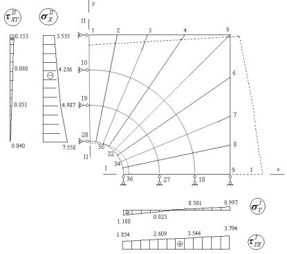 симметрию, рассмотрим четвертую часть плоского элемента. Покрываем его сеткой,