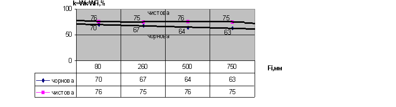 взаємокомпенсована К= ωк/ ωFi для умов чорнового та чистового оброблення і діапазонів розмірів від L < 80 мм. до L = 500 - 750 мм. Одержані результати представлені на рис.2,3.