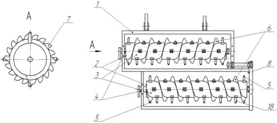 спирально-пластинчатого рабочего органа 6 выполнена рифлёной в виде поверхности турбодисков. Режущая