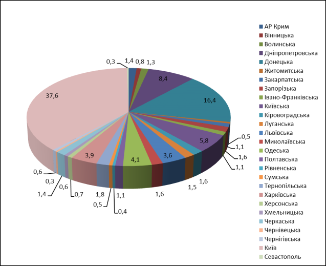 Харківській, Львівській, Луганській областях (5,8%, 4,1%, 3,9%, 3,6% та 1,5% відповідно)