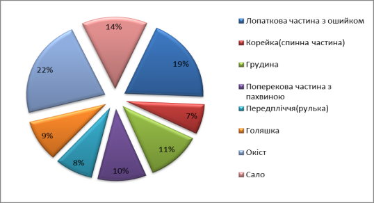 користується окіст, споживання якого 22%, проте лопаткова частина з ошийком