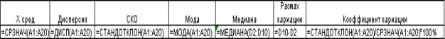 – СРЗНАЧ, ДИСП, СРОТКЛ, МОДА, МЕДИАНА сәйкес функциялар көмегімен