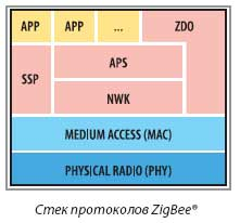 Спецификация ZigBee регламентирует стек протоколов взаимодействия узлов сети, в котором