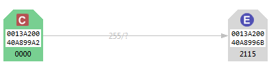 в роли координатора сети (C), а второй в роли конечного устройства (Е). Для
