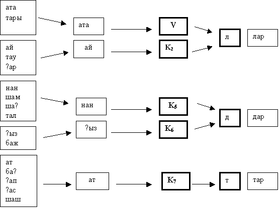 Тюркские языки, среди них и казахский язык, относятся к агглютинативному типу языков. Агглютинативным языкам присущ определенный порядок расположения окончания в составе слова. Поэтому существует определенная фонетическая связь между корнем слова и окончанием. Фонетический признак каждого окончания состоит из двух и более вариантов. Так как выбор окончания зависит от последнего звука корня слова, то все фонетические варианты окончания будут охвачены только тогда, когда окончание находится рядом с корнем слова. То есть варианты первого окончания является всегда актуальной. В этом случае нужно выбрать один из вариантов окончания. Для того чтобы найти нужный вариант окончания необходимо провести сложный фонетический анализ.