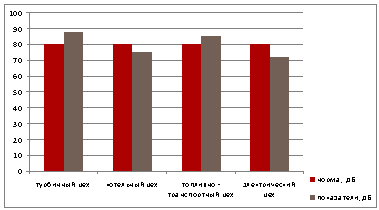 превышением УЗД на средних и высоких частотах. Наибольшей интенсивности шум достигает на