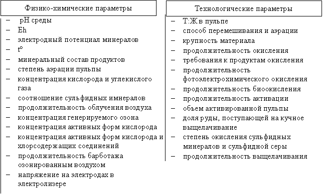 воздействий и штаммов железо- и серуокисляющих бактерий) упорных миниралов зависит от большого количества