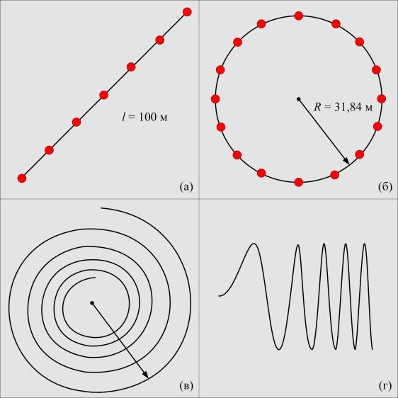 окружность; (в) – спираль; (г) – sweep-сигнал