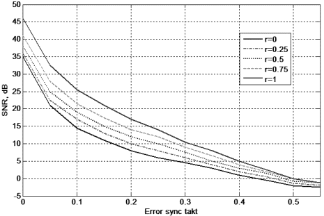 представлено залежність SNR від похибки тактової синхронізації (
