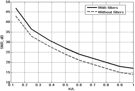 залежності співвідношення SNR від завантаження абонентами з використанням фільтрів
