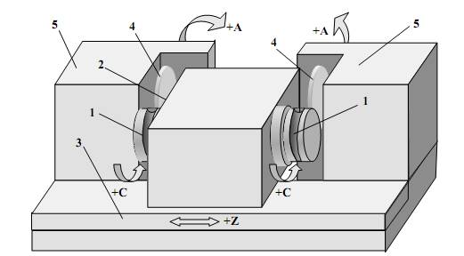 станок получил четыре управляемых формообразующих координаты (показаны стрелками