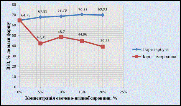 поєднання гарбуза і чорної смородини у харчовій композиції забезпечить високу вологозв’язуючу здатність.