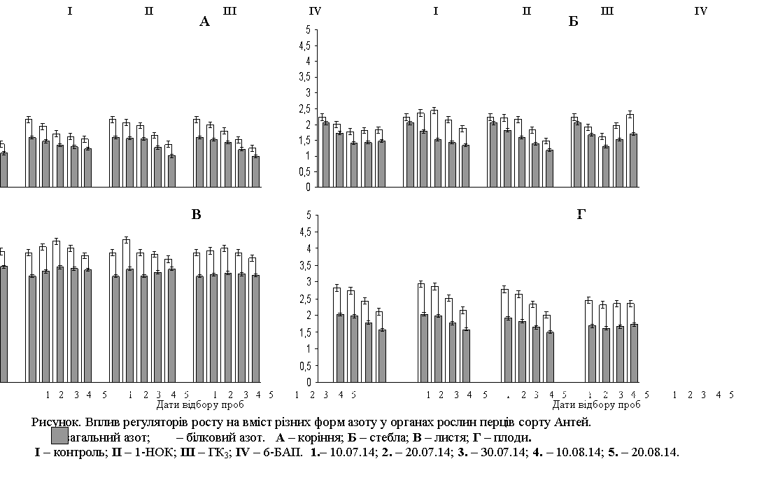 стимуляторів росту на динаміку накопичення різних форм азоту в рослин перців