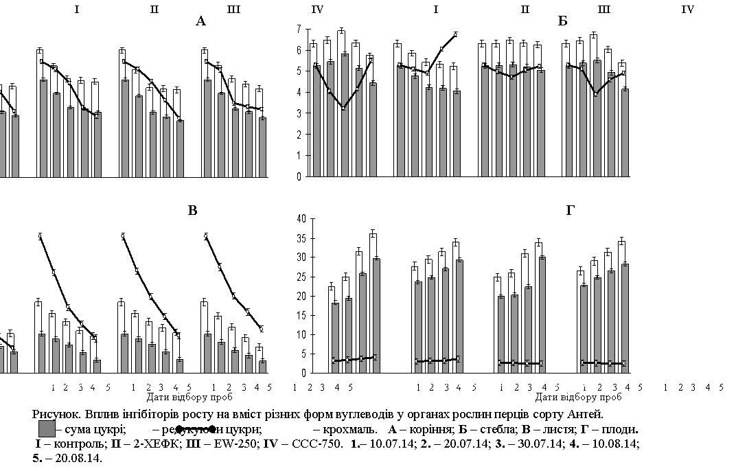 суттєво впливали накопичення і перерозподіл різних форм вуглеводів у рослин перців