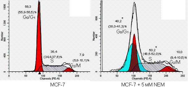 phase distribution of MCF-7 tumor cells under the effect of N-ethylmaleimide (*