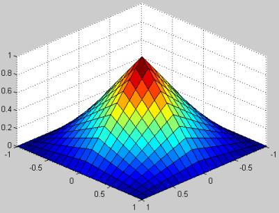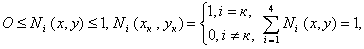 обращается в нуль всюду, кроме четырёх квадратных ячеек, на которые делится расчётная