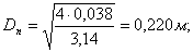 диаметры поршней (внутренний диаметр цилиндра) и штоков по формуле: