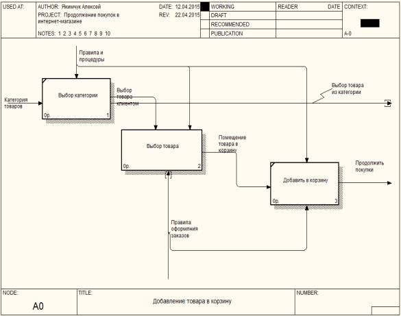 представлена декомпозиция процесса «Добавление товара в корзину». Исходной