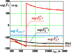 рисунке 8 показаны совмещенные кривые изменения модулей и аргументов ЭДС