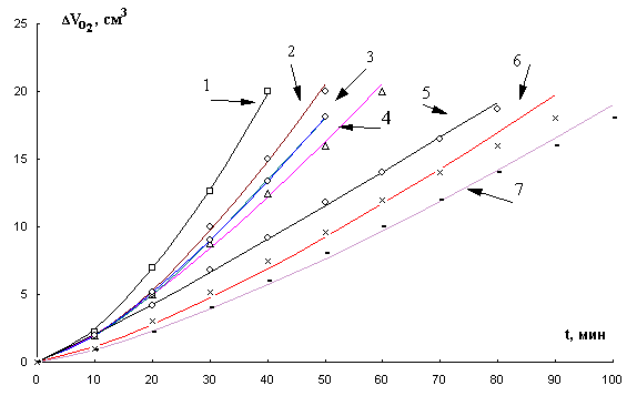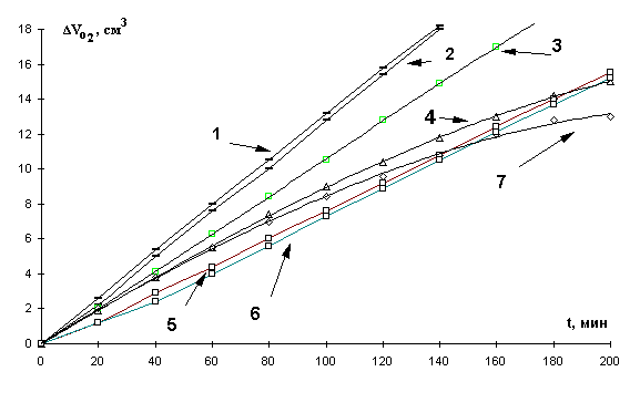 манометрическим методом поглощения кислорода в модифицированной установке типа Варбурга при окислении модельного