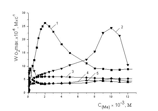 характеру кинетических кривых (КК). При участии катионов металлов только в