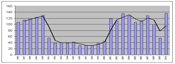 Так, період з 1986 року по 1990 роки – це фаза підйому, період з 1990 року по