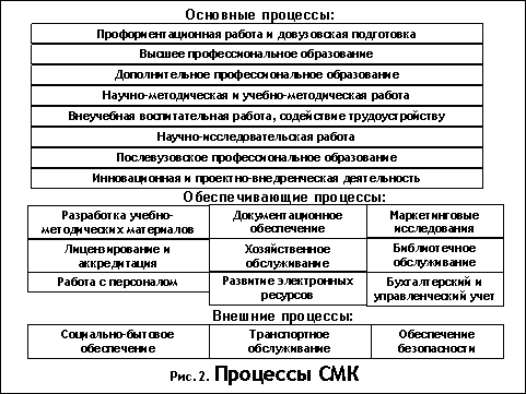 процессы СМК вуза, с ориентацией на результативность[5] и эффективность [6](рис.2.).