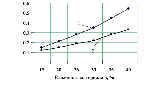 исследований зависимости количества налипающего на лопатки материала G от его влажности выявлено, что при