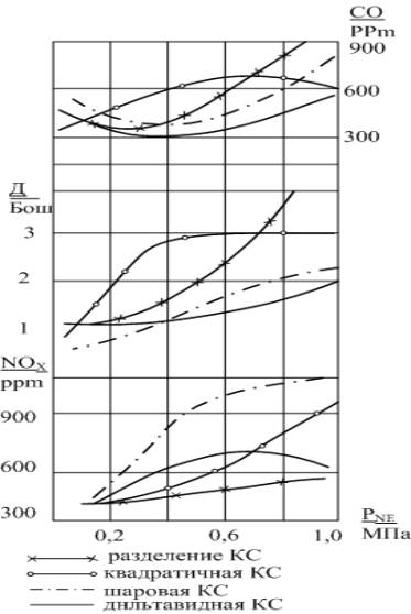 формы камеры сгорания на процессе смесеобразования, на токсичность и дымности