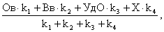 где k1; k2; k3; k4 - коэффициенты значимости соответственно для объемного выхода, весового выхода, удельного объема и кислотности: k1=4; k2=3; k3=4; k4=1.