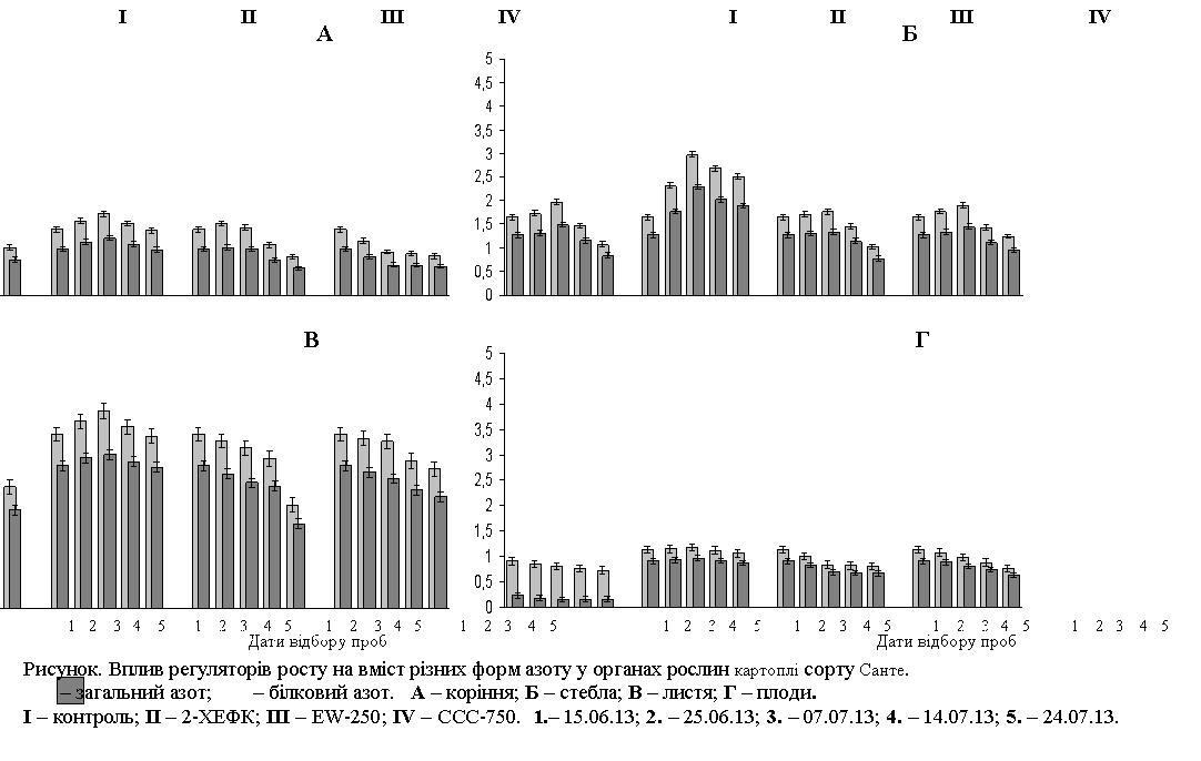 інгібіторів росту на динаміку накопичення різних форм азоту в рослин картоплі