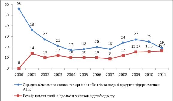 підприємств агропромислового комплексу через механізм здешевлення відсоткових