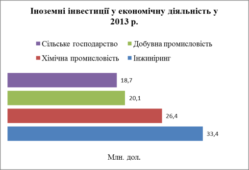 послуг підприємцям, де вкладено 33,4 млн.дол.; хімічна та нафтохімічна промисловість