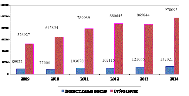 отыpып, субвенциялардың мөлшерінің қарқынды