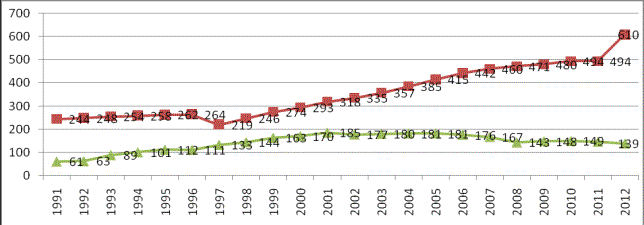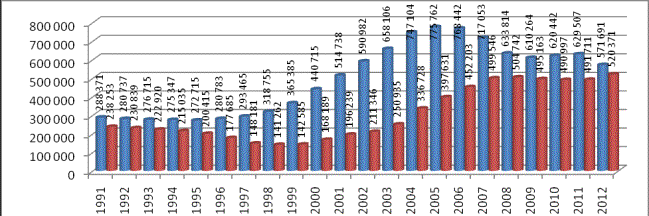 In particular it is noteworthy growth of private higher education institutions. It indicates a rather high level of trust on the part of the population to non-state universities. So the number of the issue of government and private higher education