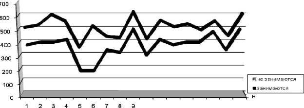 людей, що регулярно займаються фізичними навантаженнями, i тих, що не