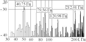 Рис. 2. Спектр частот вимушених коливань віджимної частини різцетримача з