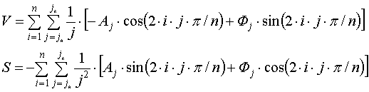 номер точки в реализации колебательного процесса; j – номер гармоники.