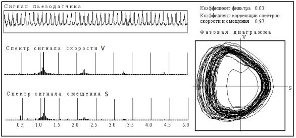 детерминированной вибрации на частоте 1,2 кГц, о чем свидетельствует высокая
