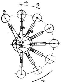 Рис.2. Динамическая схема планетарного привода шпинделей хлопкоуборочной машины.