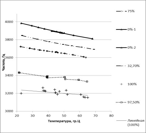 резонатора 4983200Гц). Высокий разброс измеренных значений при 100% влажности