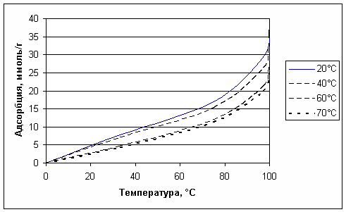 изучалось влияние температуры на изотермы сорбции паров воды. Оно проводилось с