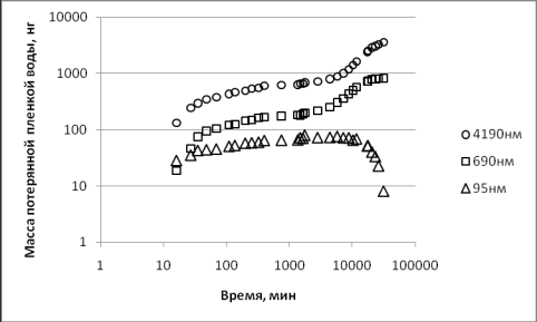 690 и 95нм). По оси ординат отложена масса испаряемой воды в нанограммах, по